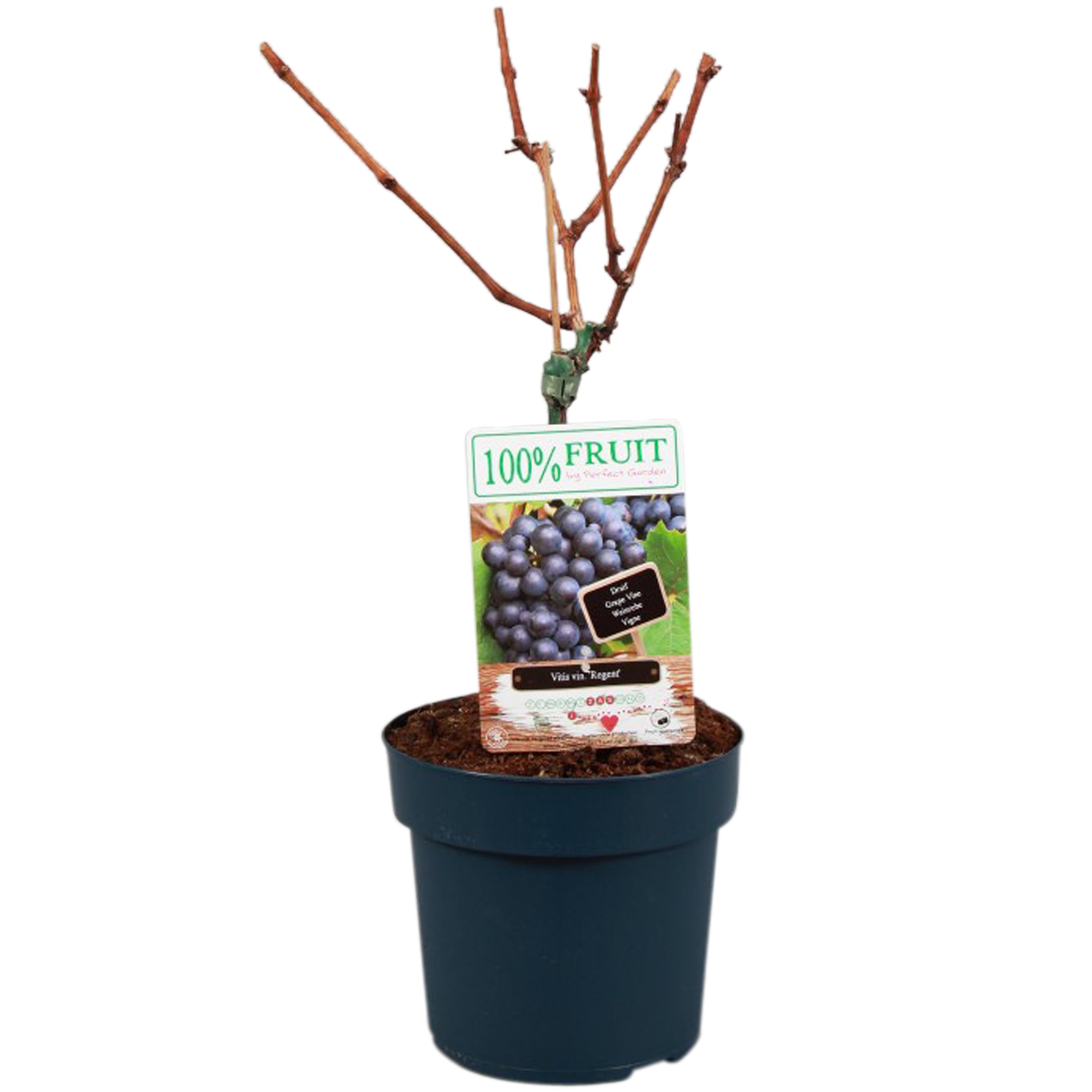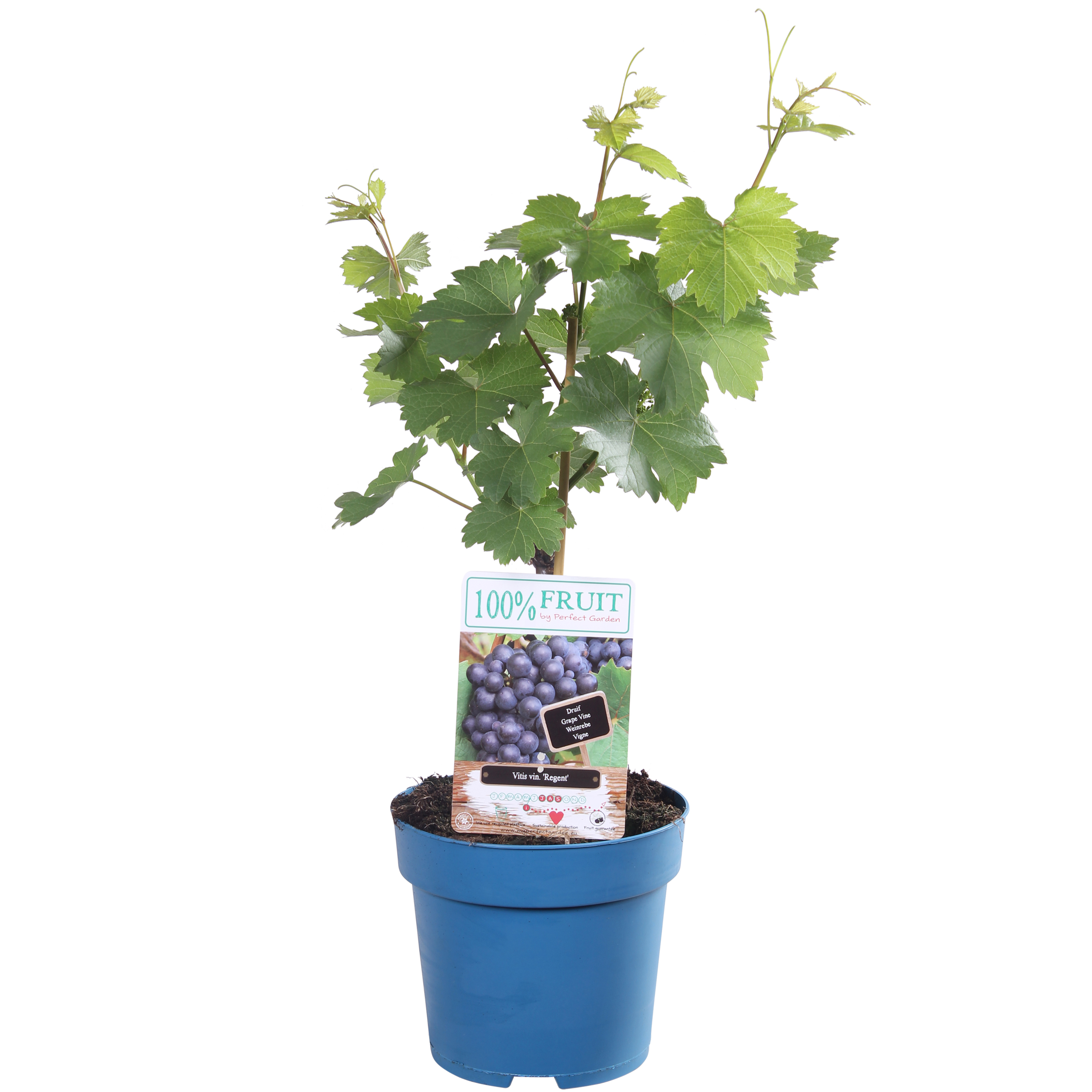 ‘Vitis Regent’ is een zoete, blauwe druif zowel geschikt voor consumptie als voor het maken van wijn. Zijn goede resistentie tegen ziektes als meeldauw maken hem zeer geschikt voor het kweken in je eigen tuin. De ‘Vitis Regent’ kent zijn oorsprong in Duitsland. Het is een vroeg rijpend ras en daardoor ook in koudere klimaten prima geschikt. Het is een klimplant die enkele meters hoog kan worden. Je kunt hem zelf in allerlei vormen leiden en door goed te snoeien zeer compact houden. Je kan de druif goed leiden langs een pergola of met spandraden op de muur. De druif geeft in de periode mei- juni eerst onopvallende trosjes bloemen, waarna de druiventrossen zullen vormen. De vruchten zijn blauw, met een zoete aromatische smaak. Je kan ze direct opeten of gebruiken voor jam, sap of het maken van wijn.