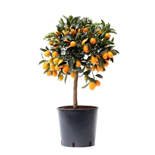 De citrus Kumquat wordt ook wel de dwergsinasappel genoemd. Deze citrus bloeit in de lente met kleine, geurende bloemen. De vruchtjes zien er uit als kleine, langwerpige sinasappeltjes. Vanaf mei mag de plant naar buiten op een zonnige, beschutte plek. De Kumquat is niet winterhard. Haal deze plant dan ook naar binnen in de winter, waar de plant goed kan overwinteren. De vruchten zijn meer voor de sier, dan voor consumptie.