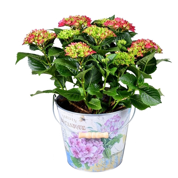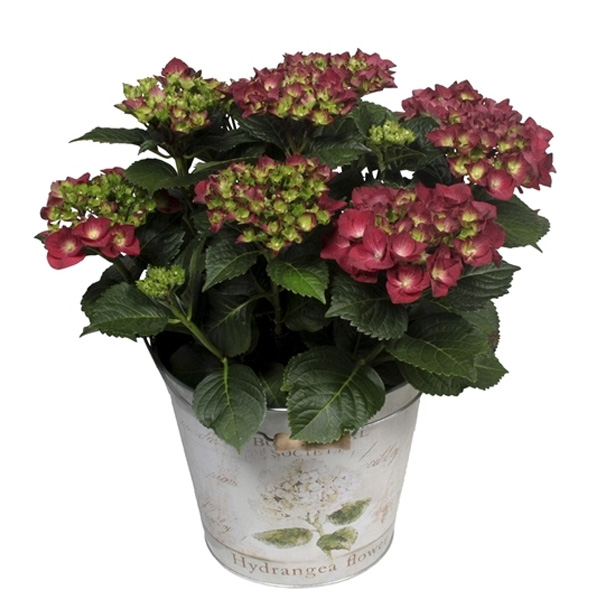Decorum Hydrangea Bol Rood in Bucket